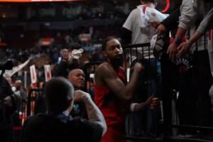 GIF-球迷猛吸英格拉姆递过来的擦汗毛巾……
