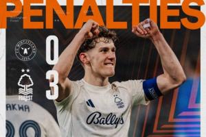 体育资讯03月20日讯 今日凌晨进行的欧联杯1/8决赛,诺丁汉森林通过点球大战淘汰中日德兰晋级8强。