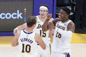 体育资讯03月31日讯 据ESPN名记Tim Bontemps和Dave McMenamin报道,湖人内部消息人士透露,湖人有兴趣续约里夫斯、海斯、肯纳德和八村塁。