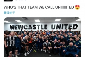 赛后纽卡官推晒出全队在更衣室庆祝合影,配文调侃道:“谁是那支被称为‘联’的球队。”