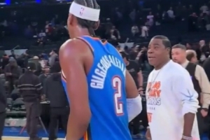 赛后,雷霆球星亚历山大将所穿球鞋送给尼克斯的超级球迷。