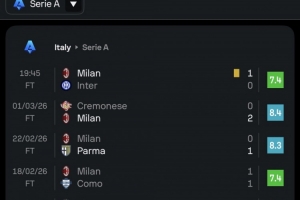 体育资讯3月9日讯 意甲第28轮比赛,莫德里奇踢满全场,帮助米兰1-0击败国米。