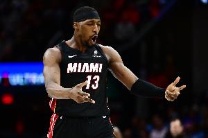 上半场,热火内线阿德巴约状态炸裂,在首节就狂轰夸张的31分,次节继续火热继续得分上双,打了19分钟,投篮24中13,三分球11中5,罚球14中12,砍下43分5篮板2抢断1盖帽的数据,正负值+11。